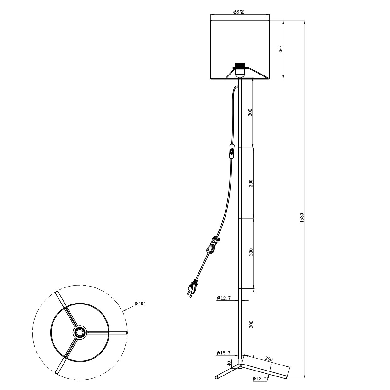 Pie de salón de la Colección CLIO, fabricado en metal con acabado blanco y pantalla textil blanca.Base que ocupa un espacio de 25 x 25 cm.Pantalla de Ø25 x 25 cm.1 x E-27 / 60W (no incluida), compatible con bombillas LED.Cable PVC negro de 1,8 m