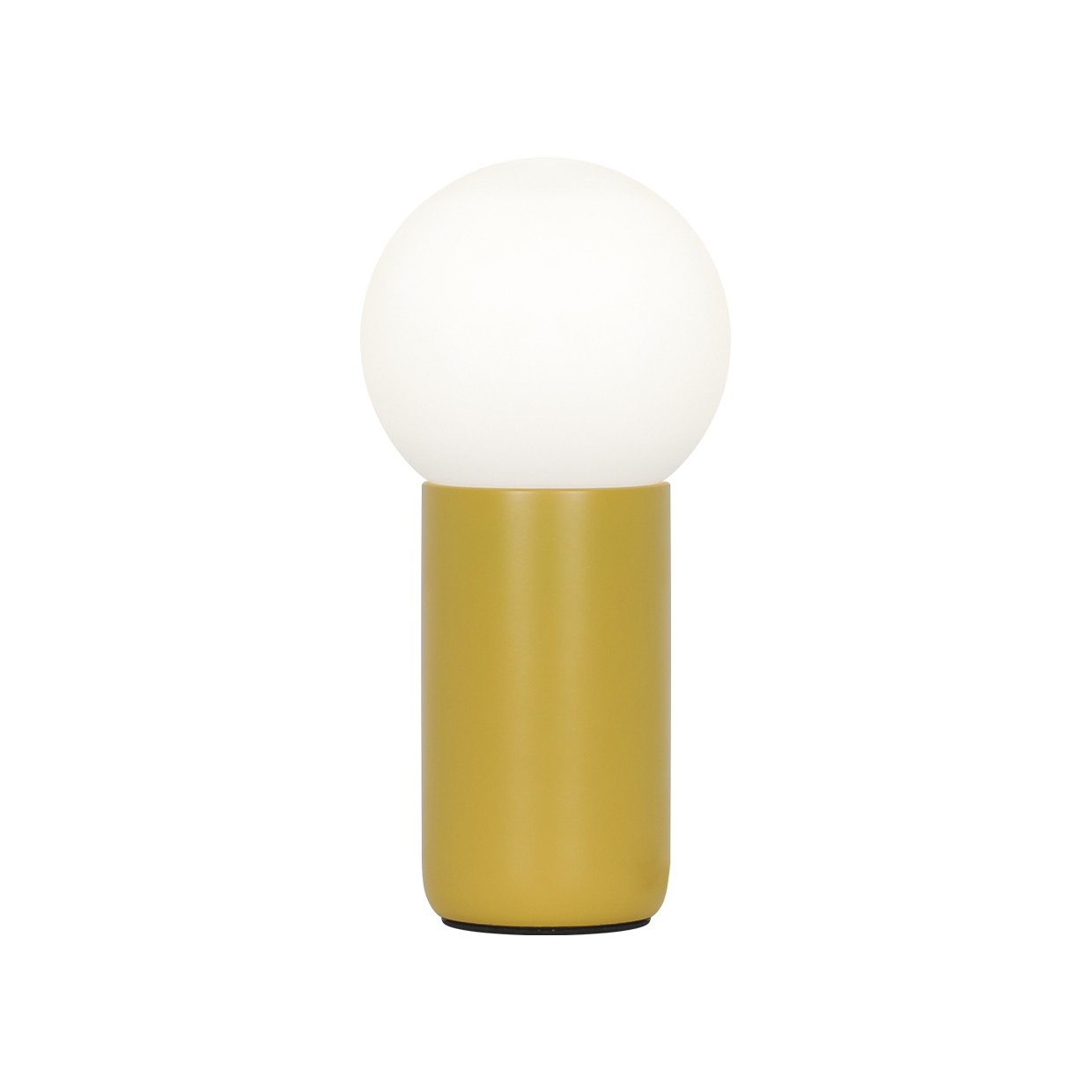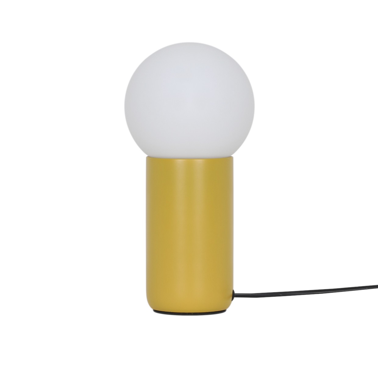 Sobremesa de la Colección MINT en acabado Amarillo y tulipa opal, fabricado en metal y cristal.Usa bombilla E-14 (no incluida) compatible con bombillas LED.Medida base: 8x8x13Cable PVC negro 1,5m con interruptor ON/OFF